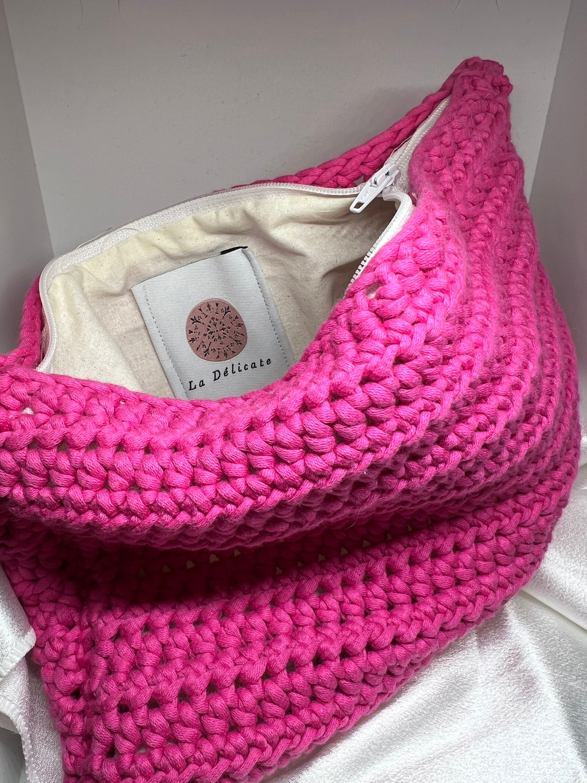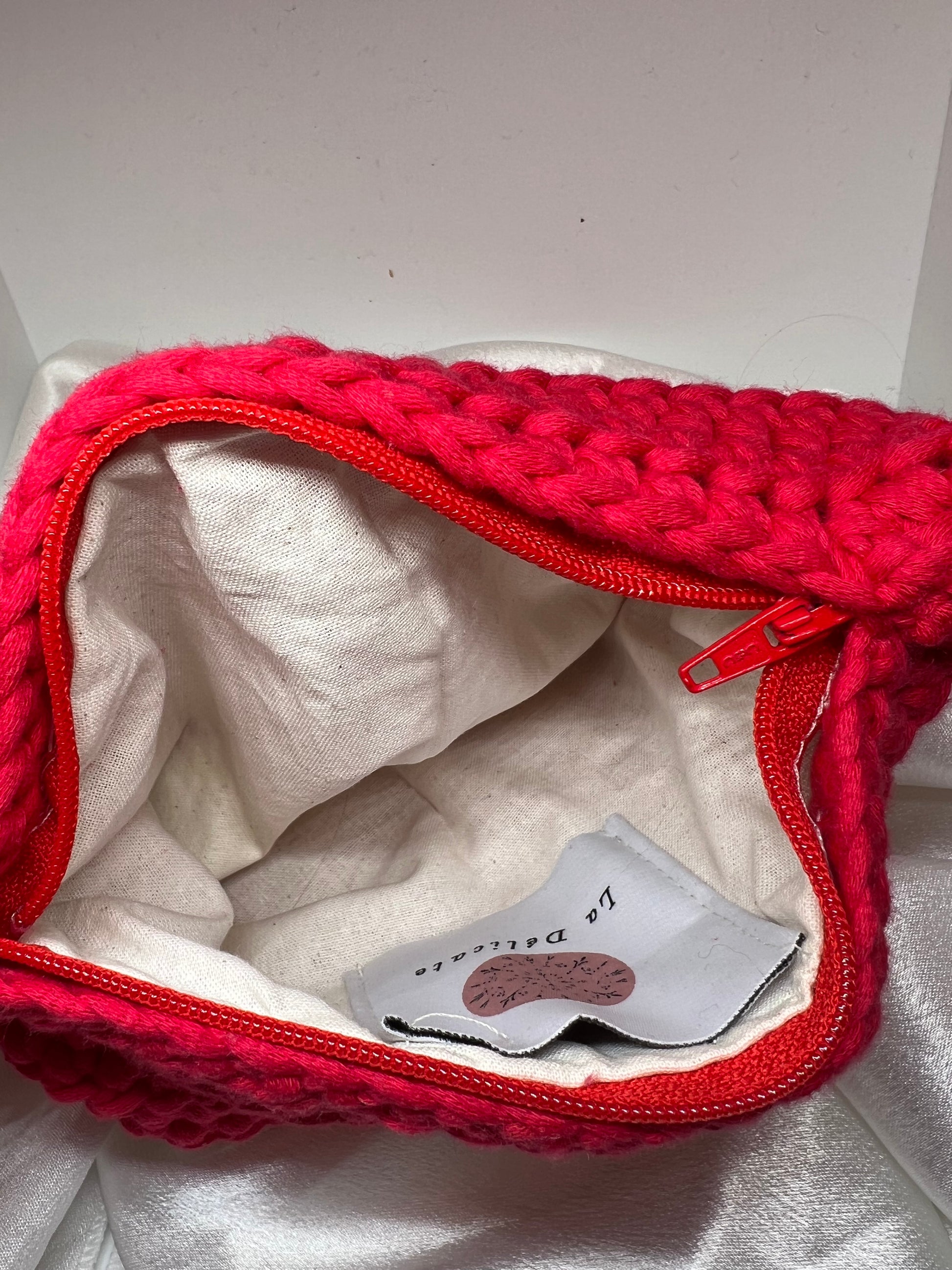 Entièrement crochetée à la main, elle allie charme artisanal et praticité. Sa texture douce et ses couleurs harmonieuses lui donnent un style unique et délicat, idéal pour une trousse de maquillage, une pochette de voyage ou un rangement d’accessoires.
